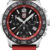 luminox pacific diver 44mm chronograph diver watch w/ black dial green rubber strap, model 3157.nf the new pacific diver chrono boasts 44mm stainless steel case with a carbonox??unidirectional bezel ??a vital instrument for any diver. luminox offers a cut-to-fit rubber strap providing an easy and perfect fit. as with every other luminox timepiece, it incorporates luminox light technology, making sure that your timepiece is visible in any condition for up to 25 years. california customers: proposition 65 warning warning: cancer and reproductive harm www.p65warnings.ca.gov show more